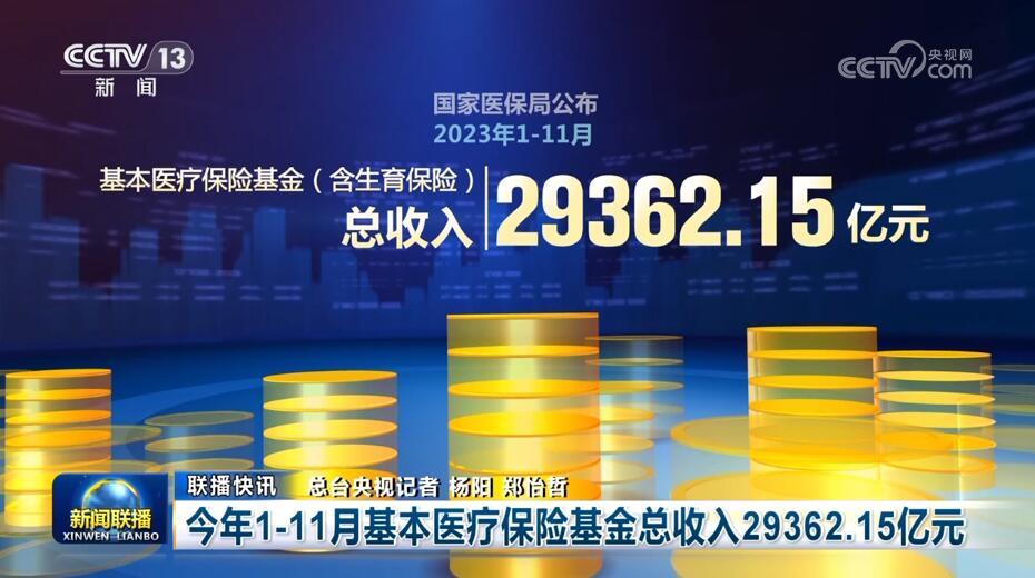 今年1—11月基本醫(yī)療保險基金總收入29362.15億元