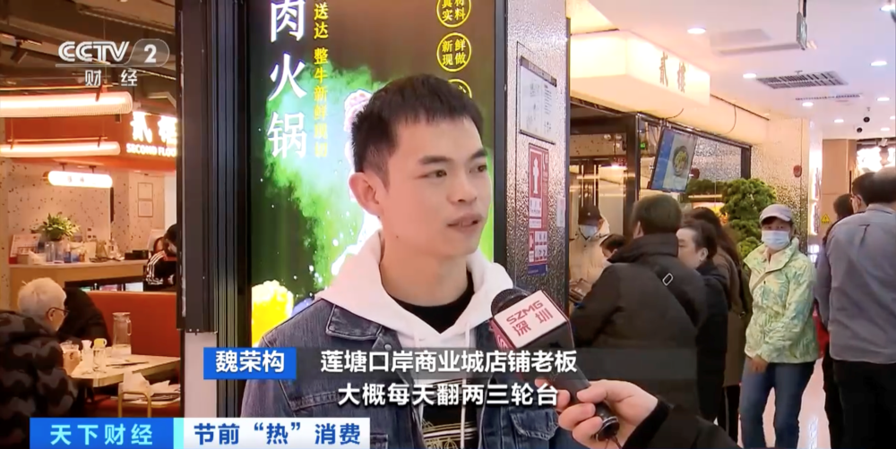 蓮塘口岸商業(yè)城店鋪老板 魏榮構(gòu):我們店里大概有20多張桌,每天翻兩三輪臺(tái),單日營業(yè)額大概三四萬元。
