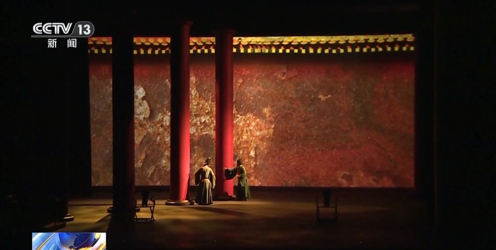舞臺(tái)上,靈感來自故宮大殿的八根紅色立柱構(gòu)建起整個(gè)表演空間,配合多媒體的數(shù)字影像,營造出極具東方審美意境的戲劇空間。兼具厚重與靈動(dòng),讓歷史劇更具當(dāng)代審美。