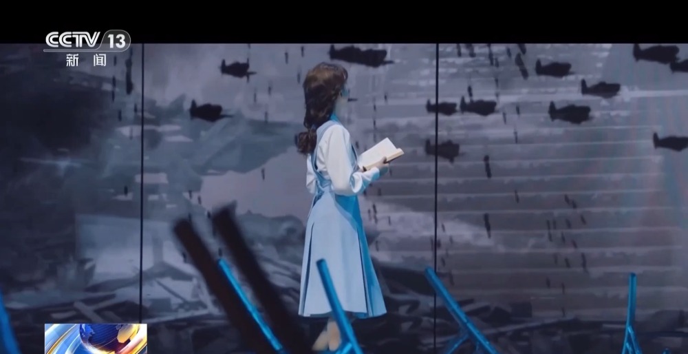 戲劇電影《抗戰(zhàn)中的文藝》以壯闊的筆觸再現(xiàn)了抗戰(zhàn)歲月中,胸懷愛國之志的文藝界人士不斷求索、奮斗,以文藝作品喚醒民眾的波瀾歷程,該劇創(chuàng)造性地運(yùn)用“影像+舞臺(tái)”的藝術(shù)手法,展現(xiàn)科技與藝術(shù)結(jié)合的最新成果。