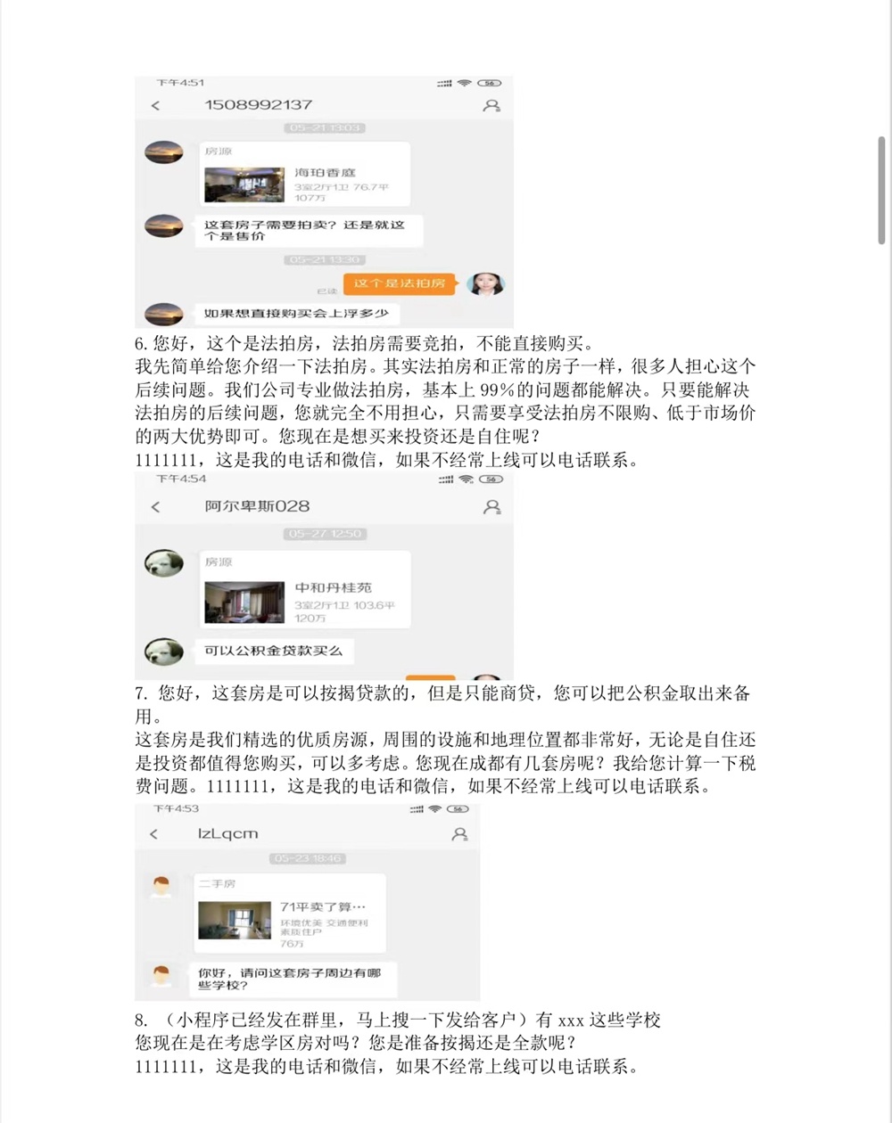 吳先生說,他所在的維權群里有30多位消費者,盡管大家是與不同中介簽訂的合同,但梳理發(fā)現,這些“法拍房中介”前期向客戶推銷時有固定的話術?!暗谝唬褪钦f現在很多房子在拍賣;依據我們的經驗,在這一帶,這種類型的房子二十幾萬就能拿下來了;他就告訴你,基本上這個價格不會有什么變化的,你只要跟我們簽約,我們就能幫你服務、幫你拿到。”