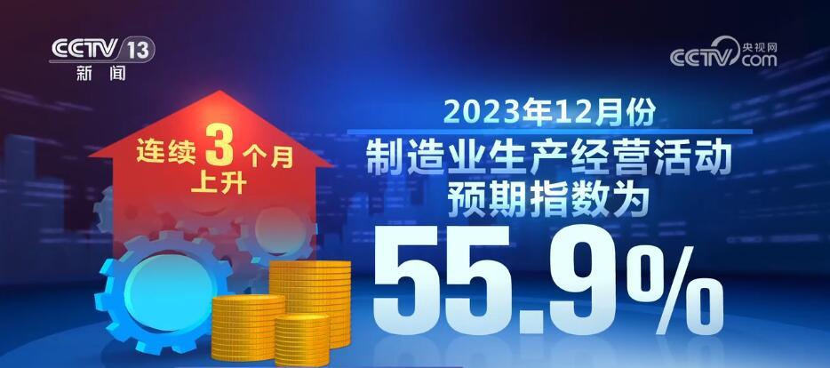 數(shù)據(jù)顯示,2023年12月份,制造業(yè)生產(chǎn)經(jīng)營(yíng)活動(dòng)預(yù)期指數(shù)為55.9%,連續(xù)3個(gè)月上升,表明制造業(yè)企業(yè)對(duì)市場(chǎng)發(fā)展信心不斷增強(qiáng)。2023年12月份,高技術(shù)制造業(yè)和裝備制造業(yè)采購(gòu)經(jīng)理指數(shù)分別為50.3%和50.2%,繼續(xù)保持?jǐn)U張。