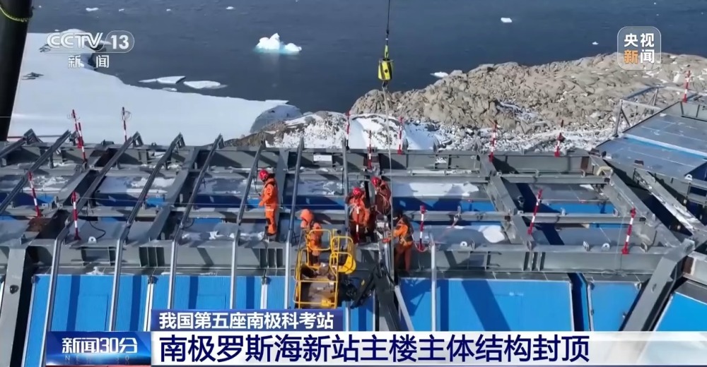 今天,正在建設(shè)中的我國第五座南極科考站——羅斯海新站,完成主樓最后一根鋼梁吊裝,標志著新站主樓主體結(jié)構(gòu)實現(xiàn)封頂。