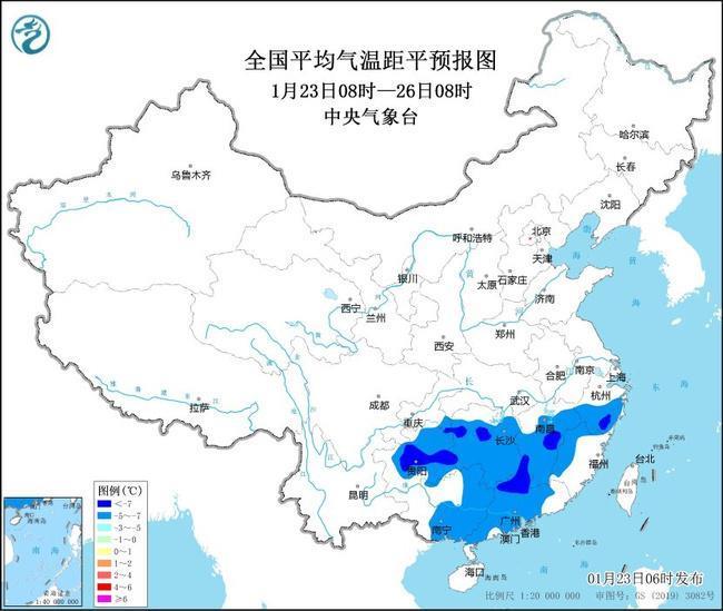 中央氣象臺1月23日06時繼續(xù)發(fā)布低溫藍色預警:預計,1月23日至25日,貴州、湖南、江西、浙江中南部、福建西部、廣東、廣西中東部等地最低氣溫或平均氣溫較歷史同期偏低5℃以上,其中,貴州中東部、湖南西北部、江西中南部、浙江南部、廣東西北部等地的部分地區(qū)偏低7℃以上,最低氣溫0℃線將位于廣西北部、廣東北部一帶 。
