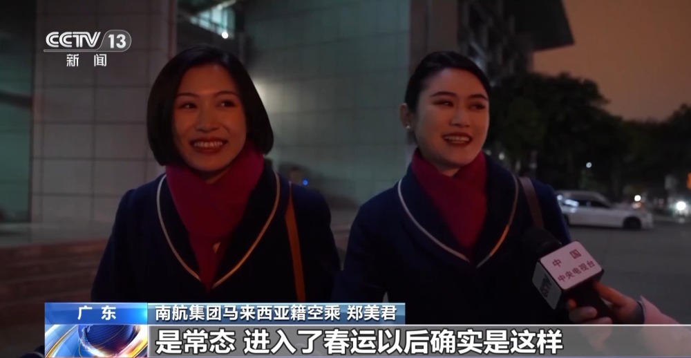 南航集團馬來西亞籍空乘 鄭美君:是常態(tài),進入了春運以后確實是這樣,在旅客不知道的角度我們做了很多準備。旅客上來的時候,其實我們已經(jīng)滿頭大汗的那種了。