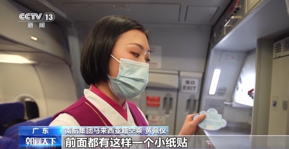 南航集團馬來西亞籍空乘 黃佩儀:現(xiàn)在又到了春運的時期,我們領資料箱的時候,特地問一下能不能多給我們兩包,盡量保證每個睡覺的旅客,前面都有這樣一個小紙貼。