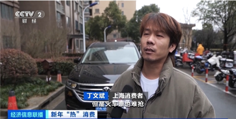 上海消費者 丁文斌:臨近春節(jié)準備回家,但火車票難搶。租了輛7座車,家里的人比較多,走親訪友這樣方便一點。