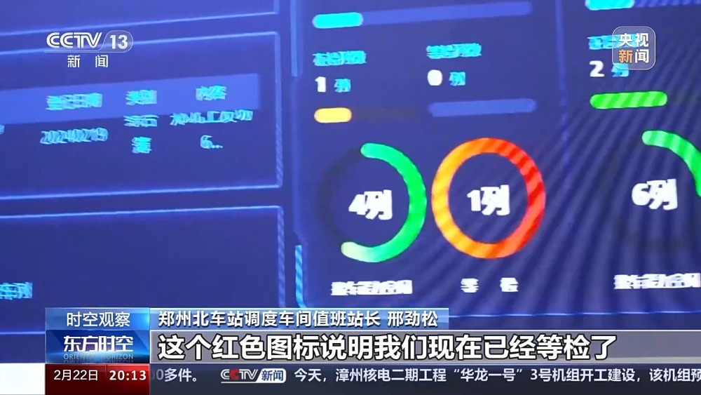 鄭州北車站調(diào)度車間值班站長 邢勁松:三種圖標,你看黃色圖標說明我們檢車能力不太緊張,然后綠色圖標說明我們接車能力空閑,紅色圖標說明我們現(xiàn)在已經(jīng)等檢了。今天我們白班基本上開了三列化肥煤車,通過大數(shù)據(jù)服務(wù)我們的春耕生產(chǎn)。