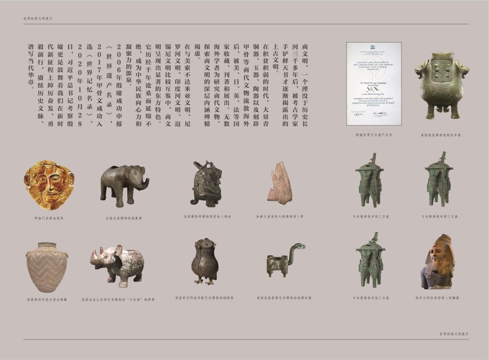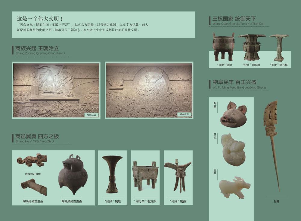 基本陳列將長(zhǎng)期對(duì)公眾開放,展示幾代殷墟考古人接力前行、不斷求索,取得了一次又一次重要發(fā)掘成果,對(duì)夏商都邑的深入研究,為不同時(shí)期不同區(qū)域的商文化研究提供了對(duì)比標(biāo)尺。眾多首次亮相的各類珍貴文物再現(xiàn)了商朝繁盛的城市文明,完善的禮樂文明、發(fā)達(dá)的青銅文明、燦爛的文字文明以及高超的科技文明。全面系統(tǒng)地展現(xiàn)了我國(guó)商代晚期都城的風(fēng)貌,讓全世界看到一個(gè)中華文明早期發(fā)展階段最為輝煌的時(shí)代——大邑商。