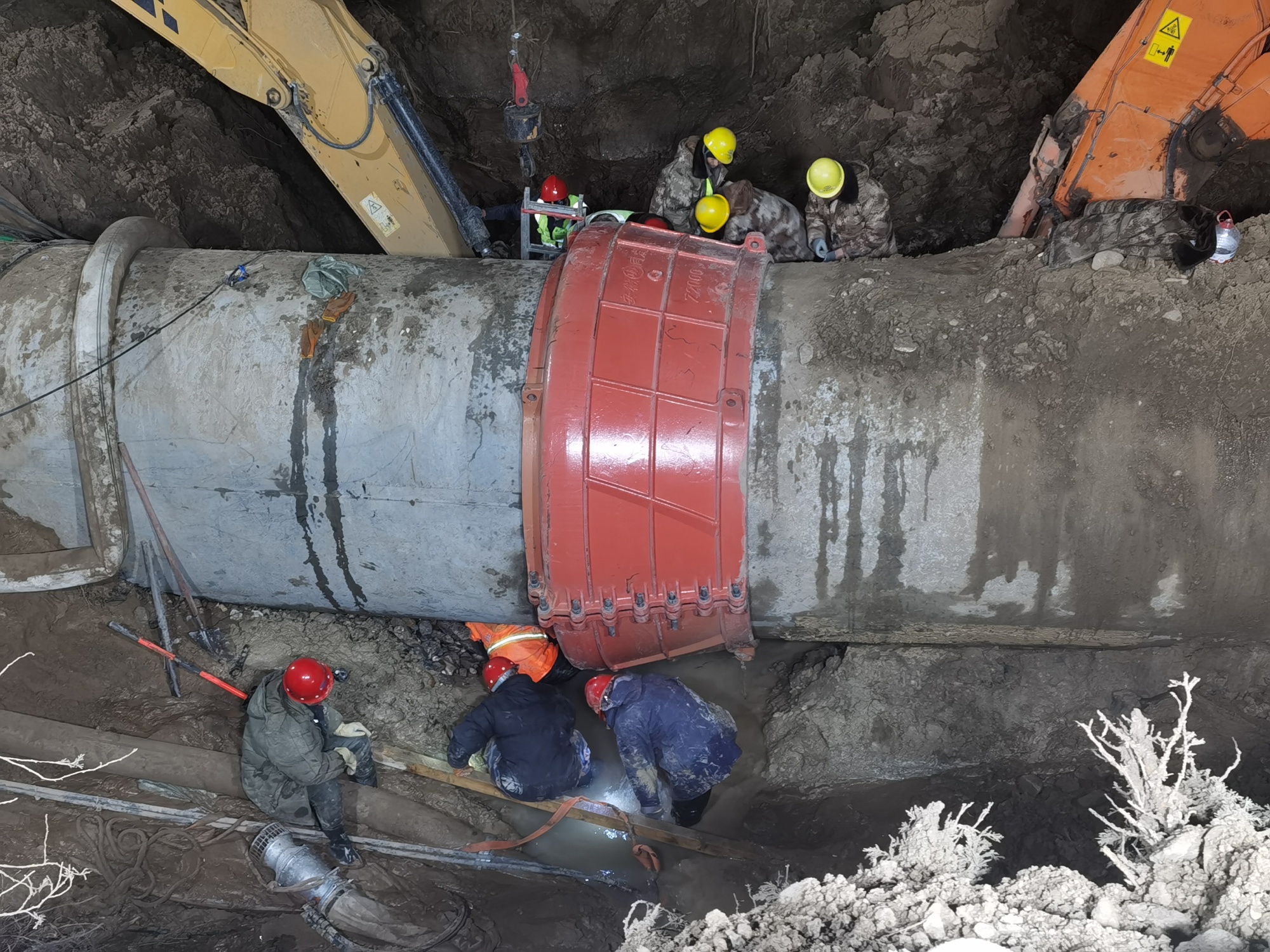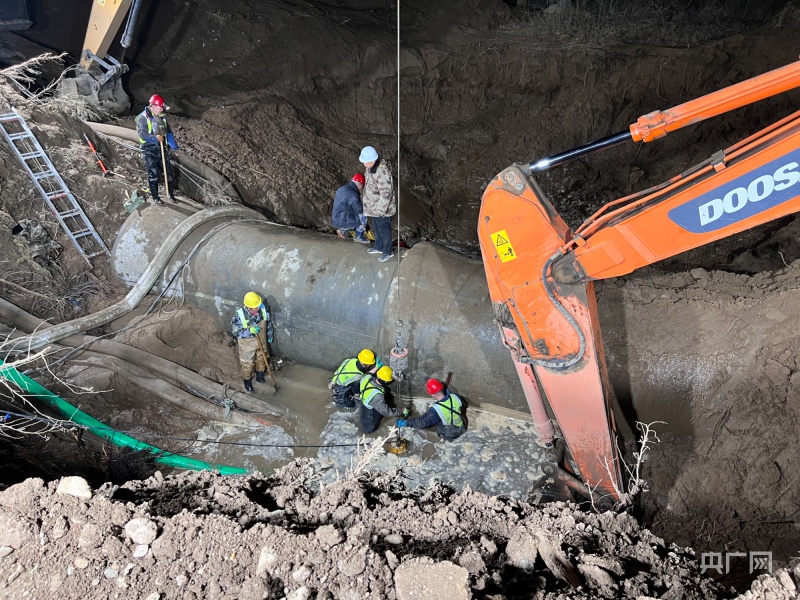 張文偉說(shuō):“因?yàn)檫@個(gè)管道是個(gè)兩米直徑的供水管線,是個(gè)主管線,它破裂以后水量特別大。管線是在耕地上,維修車(chē)輛是進(jìn)不去的。維修首先得修筑施工通道,所有車(chē)輛人員靠近不了,然后關(guān)閘停水,走施工通道過(guò)去以后,進(jìn)行原有管道抽排,管道里都是滿水,必須把水排干凈才能搶修,才能發(fā)現(xiàn)它是哪兒壞了,我們采取哪種方式來(lái)進(jìn)行搶修。搶修方案有很多種,我們也提前都有預(yù)案。所以抽水時(shí)間很長(zhǎng),上游就有7萬(wàn)多立方的水,抽排就是一個(gè)很大的難點(diǎn)?!?/p>