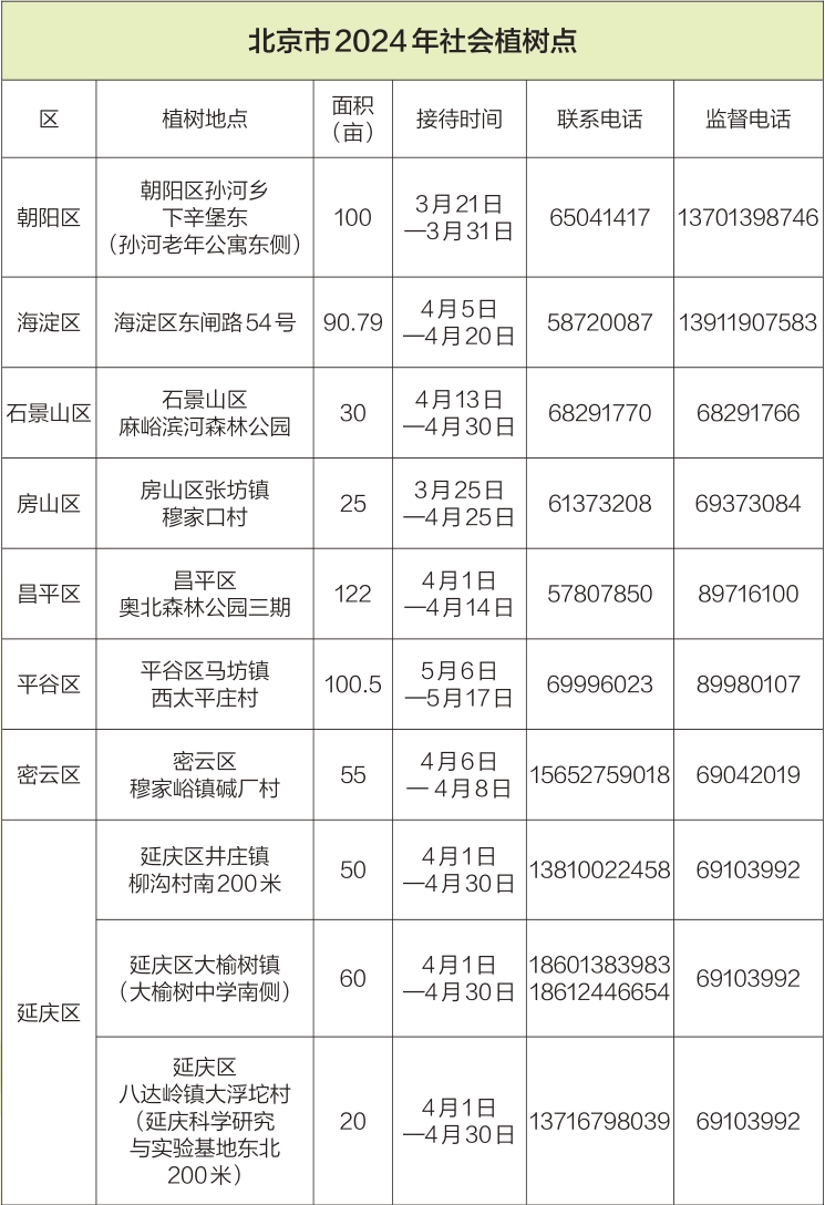 為更好地給首都市民履行植樹義務提供服務,讓更多的力量參與到北京建設花園城市的事業(yè)當中,2024年全市設立春季植樹盡責接待點10處,可供植樹面積653畝;設立社會撫育勞動接待點20處,可撫育面積3830畝;84個“互聯(lián)網+全民義務植樹”基地將提供多種盡責形式的全年化接待服務。首都市民可以通過“首都全民義務植樹”微信公眾號查詢感興趣的義務植樹盡責活動,進行預約、簽到,在線領取首都全民義務植樹盡責證書。
