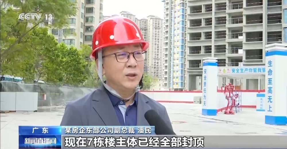 某房企東部公司副總裁 潘民:現(xiàn)在7棟樓主體已經(jīng)全部封頂,正在進行批量精裝修階段,我們都是按照計劃實施,按合同按合約交付,第一批次是在2025年的8月份交付。