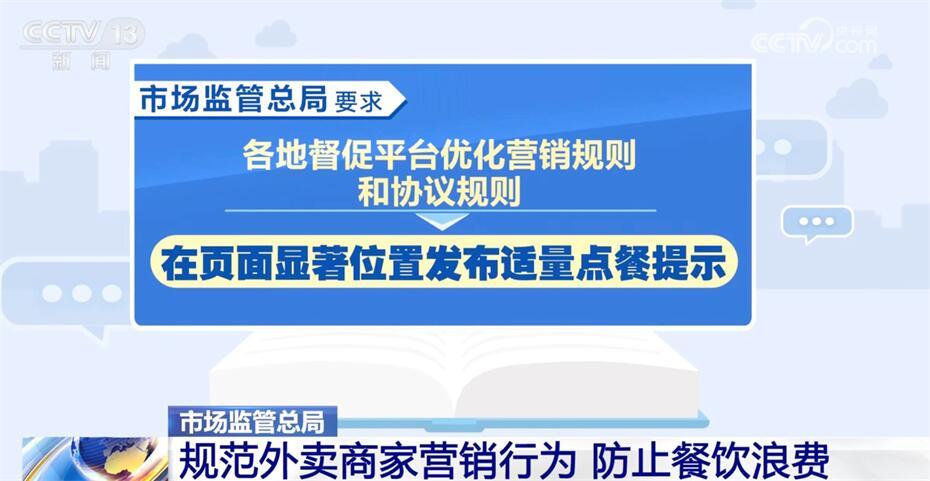 市場監(jiān)管總局要求各地督促平臺優(yōu)化營銷規(guī)則和協(xié)議規(guī)則,在頁面顯著位置發(fā)布適量點(diǎn)餐提示;鼓勵(lì)平臺健全激勵(lì)機(jī)制,推動商家開發(fā)、提供、推廣小份餐品,合理設(shè)置餐品起送價(jià)格,優(yōu)化滿減湊單機(jī)制,不將主食納入滿減優(yōu)惠展示范圍,鼓勵(lì)使用食安封簽。線上線下、同頻同步開展防止餐飲浪費(fèi)與食品安全監(jiān)督檢查,持續(xù)開展“隨機(jī)查餐廳”行動。對造成明顯浪費(fèi)、嚴(yán)重浪費(fèi)且拒不改正的,依法嚴(yán)厲處罰并公開曝光。