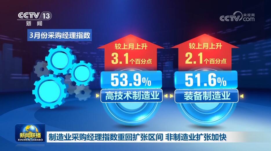 中國物流與采購聯(lián)合會、國家統(tǒng)計(jì)局服務(wù)業(yè)調(diào)查中心3月31日公布3月份中國采購經(jīng)理指數(shù)。制造業(yè)采購經(jīng)理指數(shù)重回?cái)U(kuò)張區(qū)間,景氣水平明顯提升,非制造業(yè)繼續(xù)加快擴(kuò)張。