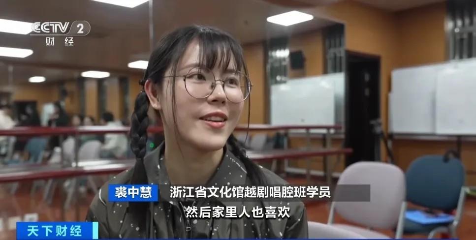 浙江省文化館越劇唱腔班學(xué)員 裘中慧:自己很想來體驗(yàn)一下越劇,家里人也喜歡,主要想學(xué)會(huì)了唱給家里人聽。