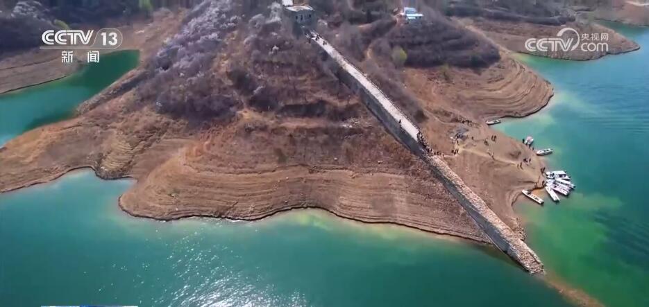 您現(xiàn)在看到的是位于河北省寬城滿族自治縣境內(nèi)的潘家口水庫“水下長城”。長城內(nèi)外,漫山遍野的山杏花悄然綻放,在春風(fēng)中爭芳斗艷,時而飄來陣陣花香。春日里,盛開的杏花、碧綠的湖水與巍峨的長城交相輝映,形成了剛?cè)嶂赖耐昝廊诤?,?gòu)成一幅絕美的畫卷,吸引了眾多游客登上長城前來賞花踏青。