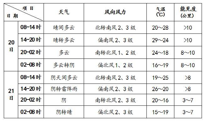21日傍晚可能出現(xiàn)雷陣雨天氣,雨量不大,請(qǐng)關(guān)注最新天氣預(yù)報(bào);大部分時(shí)間體感舒適,但晝夜溫差較大,早晨體感偏涼,午后偏熱,請(qǐng)根據(jù)氣溫變化及時(shí)調(diào)整著裝,以防感冒。