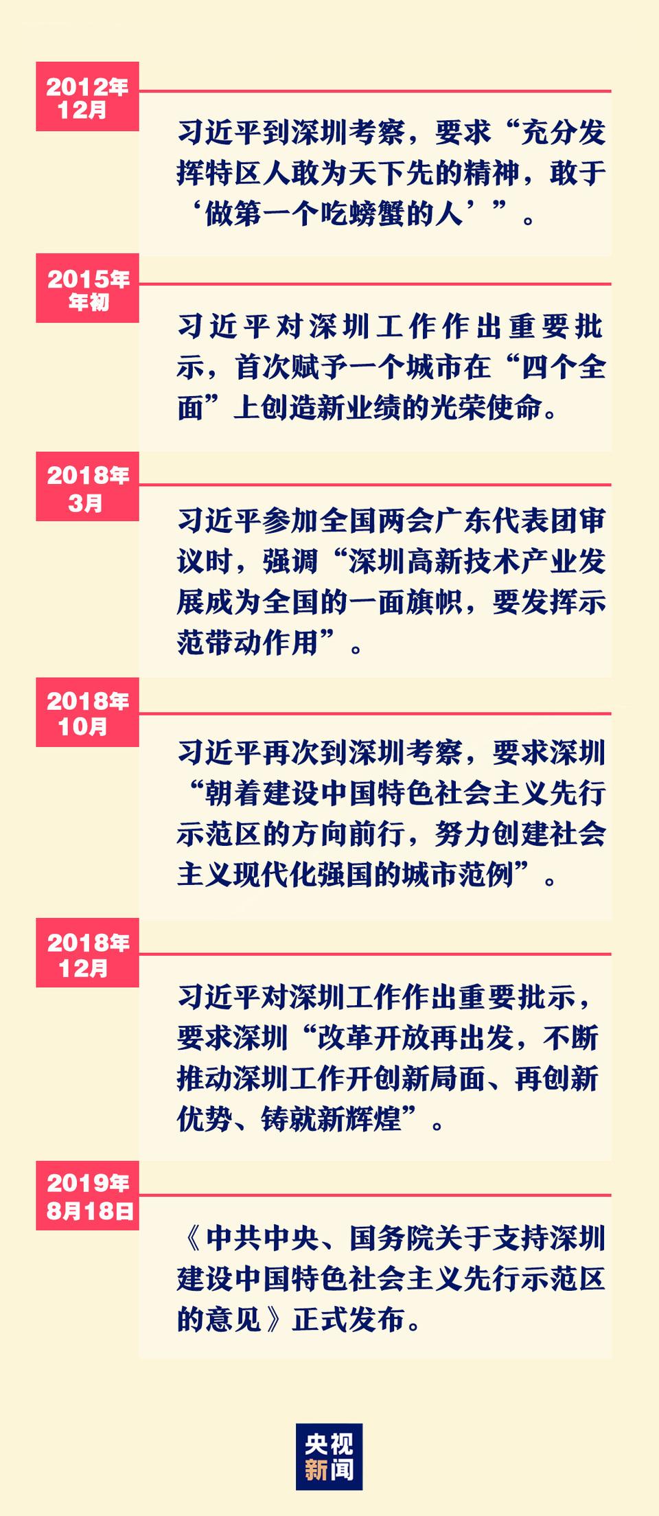 在習(xí)近平總書記的親自謀劃、親自部署、親自推動(dòng)下,2019年8月18日,《中共中央、國(guó)務(wù)院關(guān)于支持深圳建設(shè)中國(guó)特色社會(huì)主義先行示范區(qū)的意見》正式發(fā)布。這是繼興辦經(jīng)濟(jì)特區(qū)后,深圳迎來的又一重大歷史機(jī)遇。從試驗(yàn)田到先行示范區(qū),深圳承載的不僅是改革開放的先鋒使命,更是中華民族偉大復(fù)興的責(zé)任與擔(dān)當(dāng)。