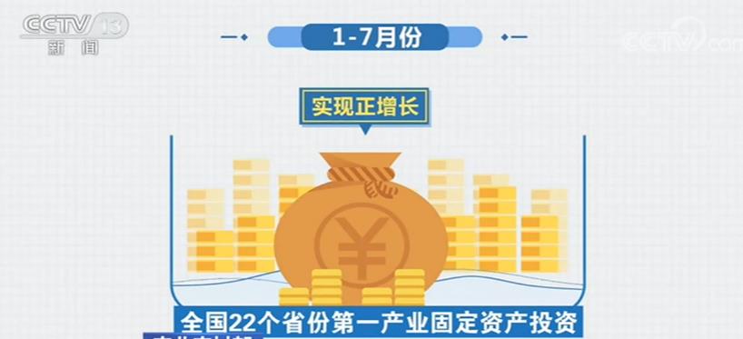 分區(qū)域看,東部、西部、東北地區(qū)投資加速,中部地區(qū)繼續(xù)回升。1—7月份,全國22個省份第一產(chǎn)業(yè)固定資產(chǎn)投資實現(xiàn)正增長。