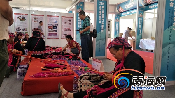 游客在2019第三屆北部灣(海南儋州)旅游美食博覽會(huì)展區(qū)參觀。南海網(wǎng)見(jiàn)習(xí)記者 李紹遠(yuǎn) 攝