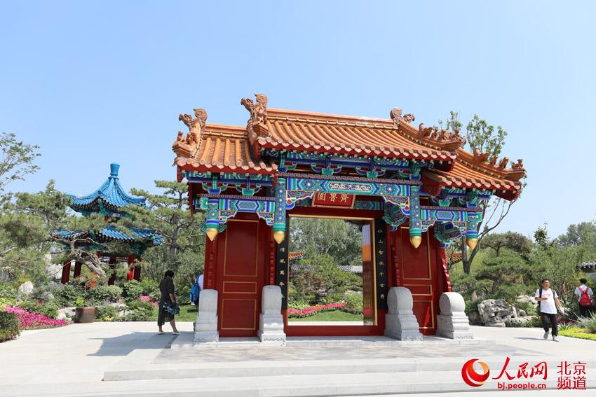 步入山東展園,第一景便是齊魯迎賓。這里以孔府重光門為設計原型,提名“齊魯園”,寓意儒家思想是中華民族的精神家園,隱喻孔子“天下第一家”的概念。人民網(wǎng)尹星云 攝