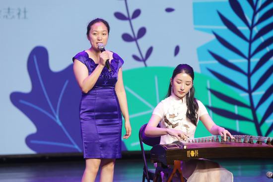 繪本劇也是在閱讀的基礎(chǔ)上延展的一種表演形式,是“閱讀+”的一次探索。本次活動(dòng)的主持人,來(lái)自中央廣播電視總臺(tái)的主持人賀超,邀請(qǐng)中央音樂(lè)學(xué)院音樂(lè)教育學(xué)者管慧丹和青年古箏演奏家侯奕上臺(tái),為大家展示 “閱讀+”的另一種表演形式——古詩(shī)詞唱讀。伴隨著悠揚(yáng)的古箏琴聲,全場(chǎng)吟唱,在座的每位觀眾都深深地感受到中國(guó)傳統(tǒng)文化的魅力。