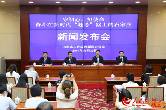 圖為“守初心 擔(dān)使命 奮斗在新時(shí)代‘趕考’路上的石家莊”主題新聞發(fā)布會現(xiàn)場。