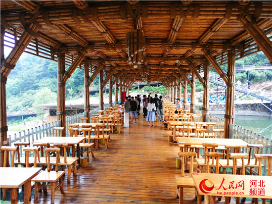“這里的景色好看,溫度也不高,挺舒服?!痹诼交ㄏ染皡^(qū)的竹廊美食苑休息區(qū),一位頭發(fā)花白的老人說,她和閨女專門從石家莊開車過來玩,從山下爬到這里的。當問到“為什么不坐游覽車上來”,老人笑著說,“坐游覽車上來就沒意思了,我們就是邊爬山邊享受這山里涼爽的空氣和欣賞沿路的景色。這里真是個養(yǎng)老的好地兒?!?/p>