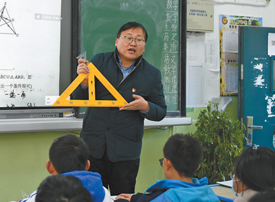 繁忙的管理工作以外,吳智勇主動承擔(dān)了初二年級一個班的數(shù)學(xué)教學(xué)工作。每個學(xué)期,他都會收兩到三名教師作“徒弟”,他說:“我會查看他們的教學(xué)計(jì)劃、教學(xué)備課材料,盡量多聽他們的課,并在課后進(jìn)行輔導(dǎo)?!敝灰挥锌眨€會隨機(jī)聽本地教師講的數(shù)學(xué)課,課后進(jìn)行交流。