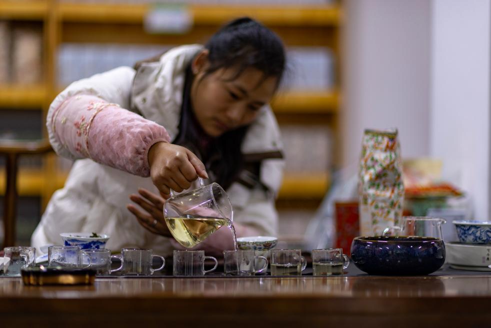 除銷售茶青之外,格林村人正在將茶產(chǎn)業(yè)不斷延伸??床?、喝茶、吃茶飯、體驗(yàn)做茶,圍繞茶和茶園,在政府的支持下,格林村有了自己的品牌,村里還建起了茶葉加工廠,形成茶產(chǎn)業(yè)“一條龍”發(fā)展鏈條。“2023年茶葉廠正式運(yùn)營(yíng)以來(lái),銷售額已經(jīng)超過(guò)千萬(wàn)元?!蔽鞑亓种ツ撌畬毑铇I(yè)有限公司負(fù)責(zé)人陳超說(shuō)。