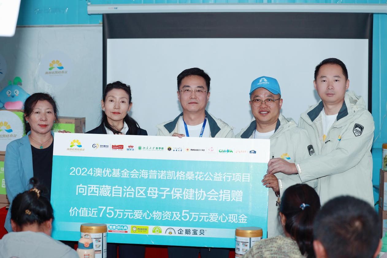 2024澳優(yōu)基金會海普諾凱格?;ü嫘许椖肯蛭鞑刈灾螀^(qū)母子保健協(xié)會捐贈愛心物資和現(xiàn)金。