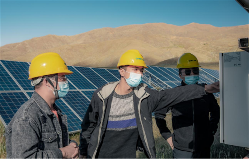 陶瑞勇(中)調(diào)研瓊結(jié)光伏發(fā)電項(xiàng)目運(yùn)營(yíng)情況。曲杰供圖