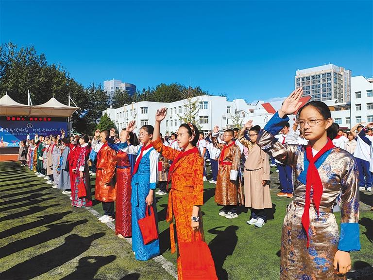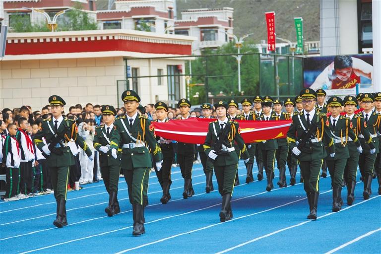 拉薩北京實(shí)驗(yàn)中學(xué)舉行升國旗儀式。