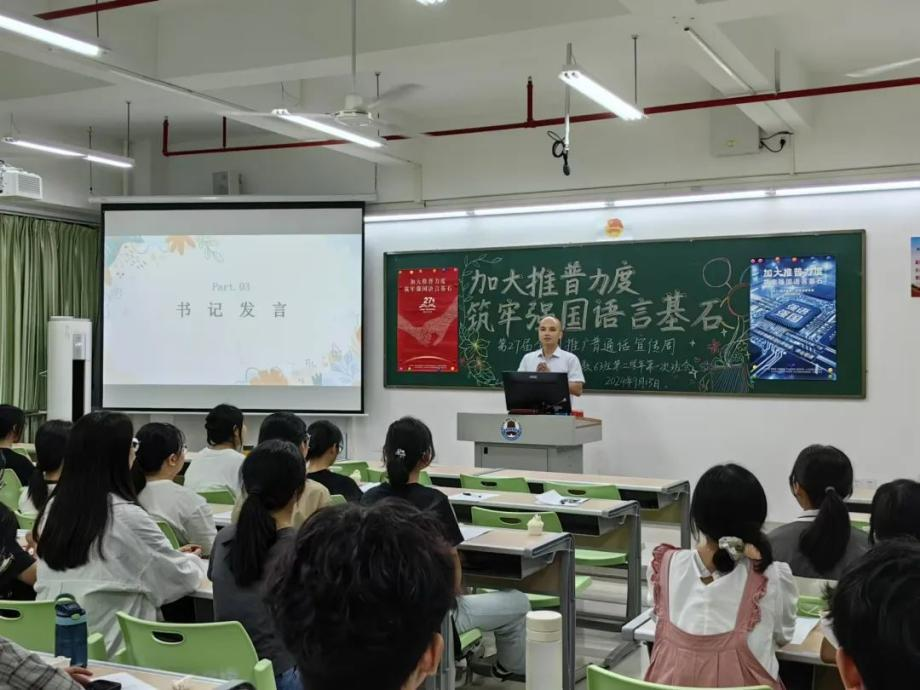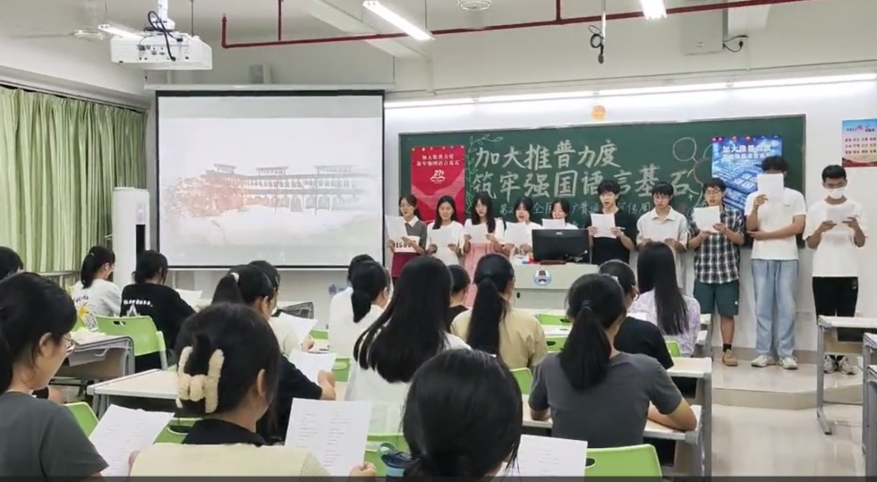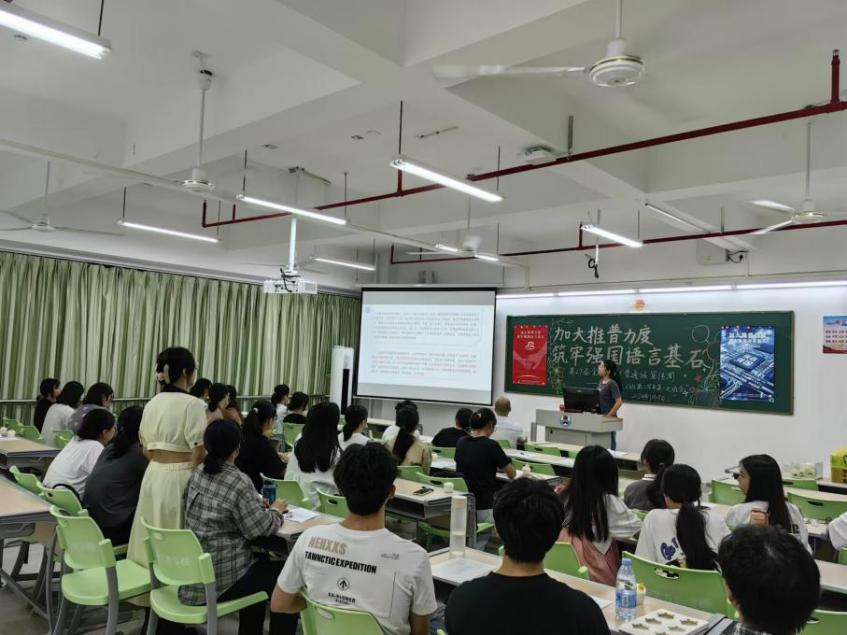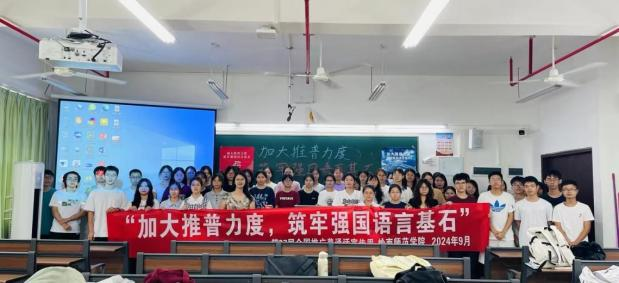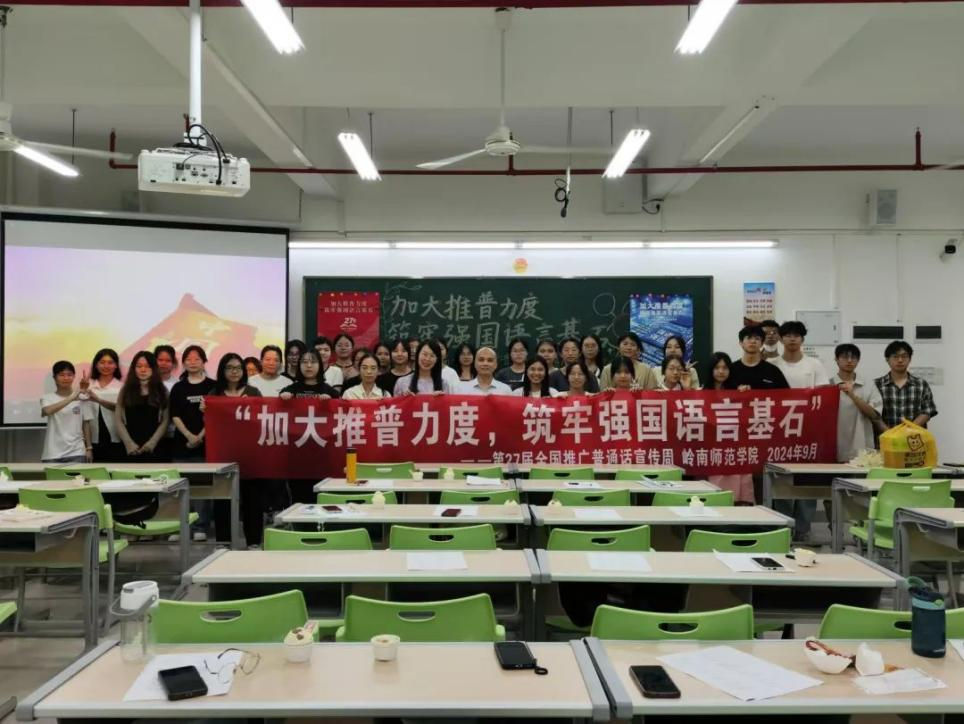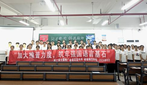 新時代教育高質(zhì)量發(fā)展的浪潮中,加強國家通用語言文字教育是提升國民素質(zhì)、促進文化認同、推動社會進步的重要基石。嶺南師范學(xué)院積極響應(yīng)國家關(guān)于加強國家通用語言文字推廣普及的號召,圍繞“加大推普力度,筑牢強國語言基石”第27屆全國推普周主題,依托學(xué)校《教師語言》課程組,成功舉辦了一系列豐富多彩、特色鮮明的語言文化活動,不僅彰顯了學(xué)院在師范教育領(lǐng)域的深厚底蘊與創(chuàng)新活力,更為國家語言文字建設(shè)和教育強國戰(zhàn)略貢獻了重要力量。