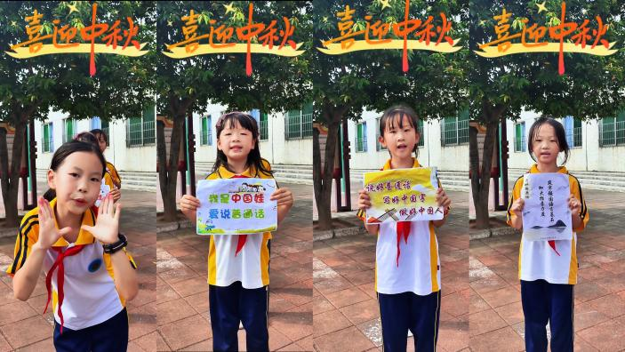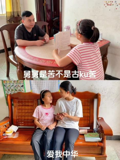 20級畢業(yè)生龍源天在清遠市連州市龍坪鎮(zhèn)中心小學(xué)進行推普創(chuàng)新實踐,指導(dǎo)學(xué)生借助手勢舞誦讀《古朗月行》,并將推普工作與家庭教育緊密結(jié)合,策劃與指導(dǎo)“普通話進家庭”活動。小朋友們化身為普通話小老師,糾正家長的發(fā)音,與家長共同學(xué)習(xí)、共同進步,提高了家長們的語言規(guī)范意識;親子同唱《愛我中華》經(jīng)典歌曲,讓推普成為家庭文化的一部分,家庭成員之間的情感得以加深,更在孩子們心中種下了愛國愛家的種子。