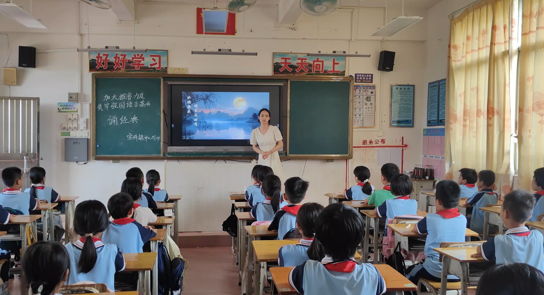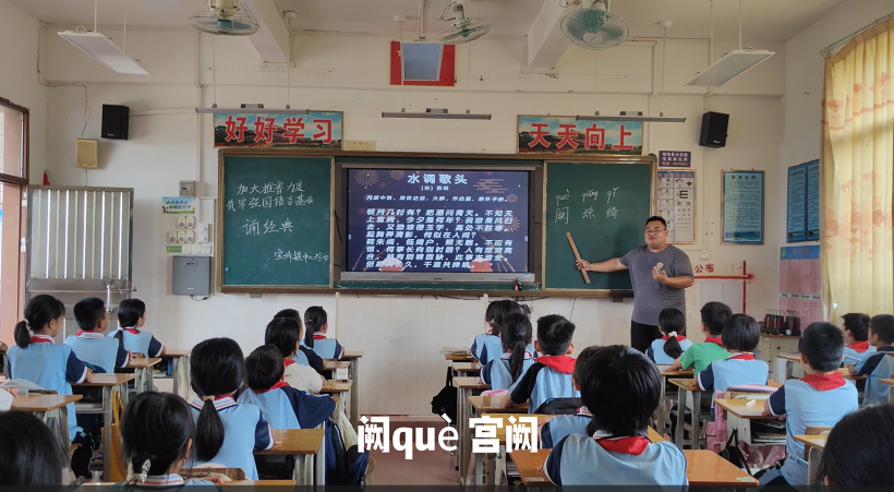 云浮市郁南縣寶珠鎮(zhèn)中心學(xué)校教師鐘凱祈指導(dǎo)四年級學(xué)生誦讀《水調(diào)歌頭》
