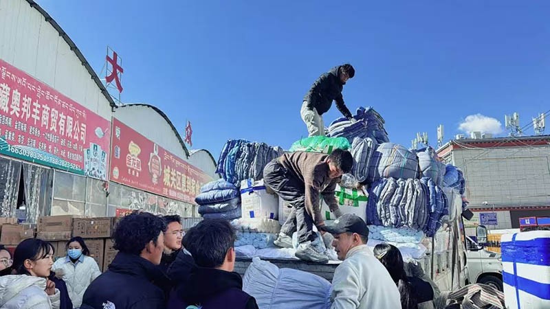 立馬行動(dòng)起來(lái)!他們自籌資金,陳軍亮還聯(lián)系到一些戰(zhàn)友,共同集資采購(gòu)救災(zāi)物品。作為公益機(jī)構(gòu)負(fù)責(zé)人,王順利和她的小伙伴,第一時(shí)間買了從西安轉(zhuǎn)機(jī)飛往拉薩的機(jī)票,并在路上聯(lián)絡(luò)西藏的伙伴,采購(gòu)物資足足裝了3卡車,共30多噸,價(jià)值超過(guò)40萬(wàn)元,緊急運(yùn)輸發(fā)往定日。