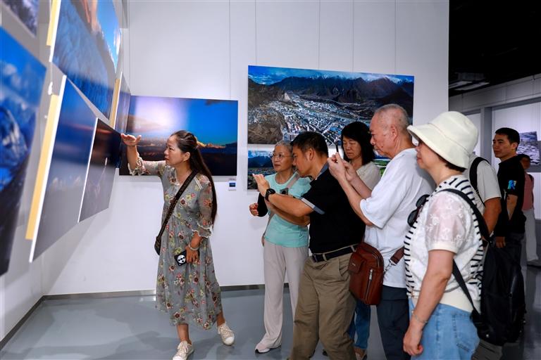 廣東省中山市市民觀看“粵藏同心 山海同行”廣東中山市·西藏林芝市工布江達(dá)縣攝影作品展。