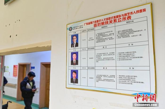 圖為2020年12月21日,西藏林芝市人民醫(yī)院內(nèi)的墻面上張貼著“廣東省第六批醫(yī)療人才組團(tuán)援藏隊(duì)與林芝市人民醫(yī)院結(jié)對(duì)幫扶關(guān)系公示表”。 中新社記者 陳驥旻 攝