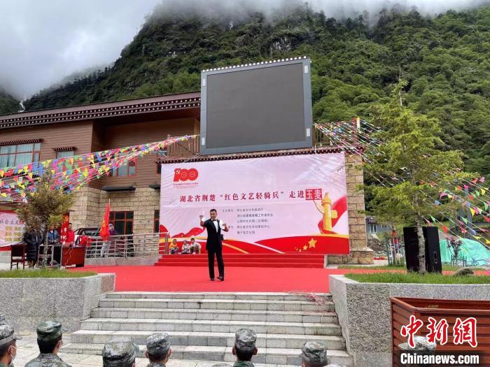 此次慰問(wèn)演出中,“紅色文藝輕騎兵”小分隊(duì)穿行高原崎嶇的山路,翻越數(shù)座海拔5000多米的雪山,穿越雅魯藏布大峽谷,把歌聲和祝福送到邊境地區(qū)。