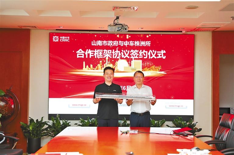 山南市政府與中車株洲所簽署合作框架協(xié)議現(xiàn)場(chǎng)。