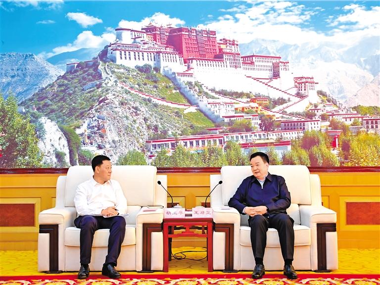 9月9日至13日,吉林省黨政代表團(tuán)來藏考察。自治區(qū)黨委書記王君正與吉林省委副書記、省長胡玉亭一行座談。