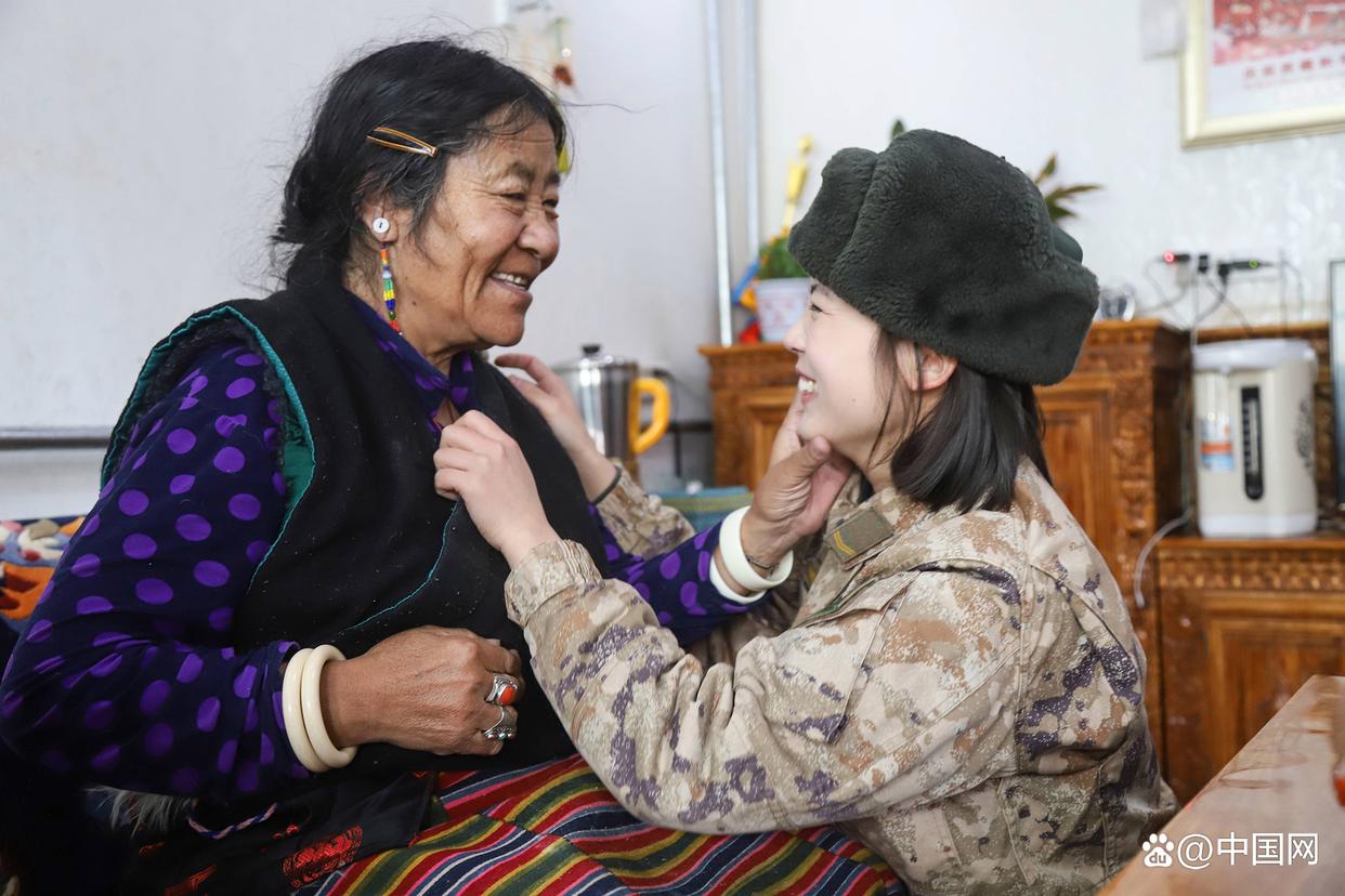 2024年3月1日,新疆軍區(qū)某工兵團(tuán)官兵們走進(jìn)阿里日土縣的敬老院,開展學(xué)雷鋒志愿服務(wù)活動。女兵王文靜與藏族阿媽溫馨互動的畫面,成為當(dāng)天最暖心的一幕?!D片來源:中國網(wǎng)