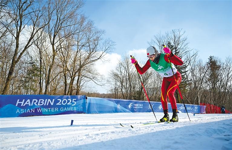 那天,第九屆亞洲冬季運(yùn)動(dòng)會(huì)越野滑雪迎來(lái)收官戰(zhàn)——男子4×7.5公里接力項(xiàng)目比賽,次仁占堆與隊(duì)友李明林、寶林、王強(qiáng)獲得金牌。