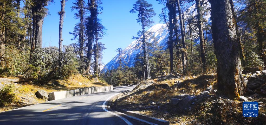 這是在通往墨脫縣城的路上拍攝的嘎龍拉雪山(12月21日攝)。新華社記者 覺果 攝