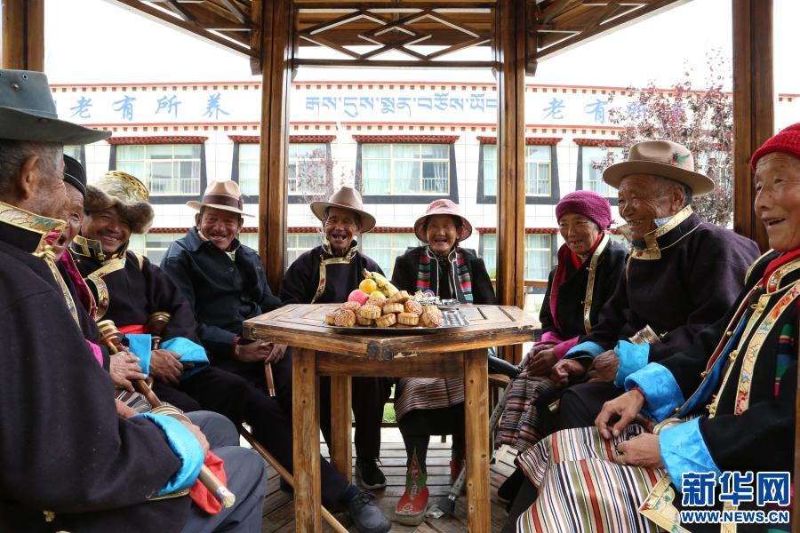 西藏山南市瓊結縣五保戶集中供養(yǎng)中心的老人們在過中秋佳節(jié)(2016年9月14日攝)。新華社記者 普布扎西 攝 在社會保障資金投入方面,西藏完善了城鄉(xiāng)居民最低生活保障制度,最低保障標準分別達到月人均847元、年人均4713元。同時,五保供養(yǎng)和孤兒收養(yǎng)實現(xiàn)“雙集中”,農村特困人員集中供養(yǎng)救助生活補助達到年人均13213元,分散供養(yǎng)救助生活補助達到年人均7070元。