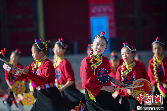 資料圖為西藏自治區(qū)拉薩市城關(guān)區(qū)慈覺林數(shù)十名孩子練習熱巴舞。 中新社記者 貢嘎來松 攝