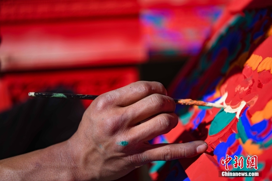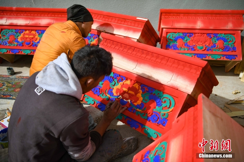 12月28日,西藏拉薩堆龍德慶區(qū),古俗民族傳統(tǒng)手工藝發(fā)展專業(yè)合作社員工在家具上繪制藏式裝飾。據(jù)悉,該合作社以繪畫、木工、縫紉為主,承接傳統(tǒng)手工藝方式制作家具、房子裝修、唐卡繪畫、旅游產(chǎn)品、文物建筑維修等工作。自2018年合作社成立至今,帶動(dòng)就業(yè)共60余人。 中新社記者 貢嘎來松 攝