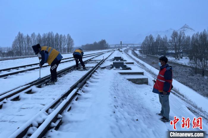 迎戰(zhàn)大雪 西藏日喀則鐵路職工清掃積雪保障拉日鐵路運(yùn)營