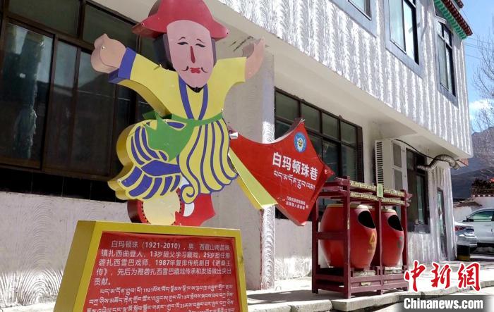 扎西曲登社區(qū)以藏戲傳承人名字命名的街巷,藏戲鼓形做成的垃圾桶,藏戲面具元素門簾、抱枕、掛件、路燈、地圖、指示牌等,無(wú)不呈現(xiàn)“藏戲第一村”濃濃的文化藝術(shù)氛圍與魅力。